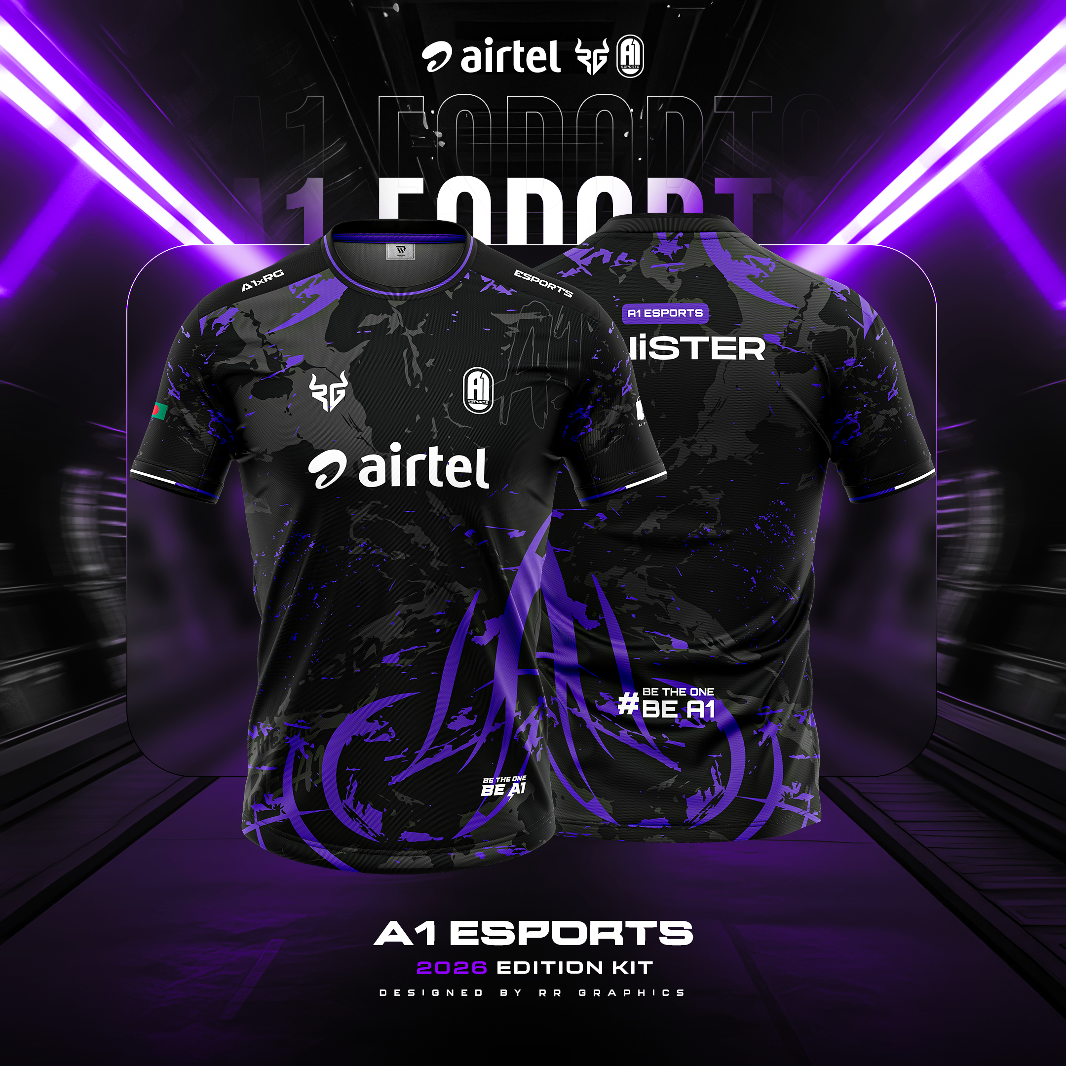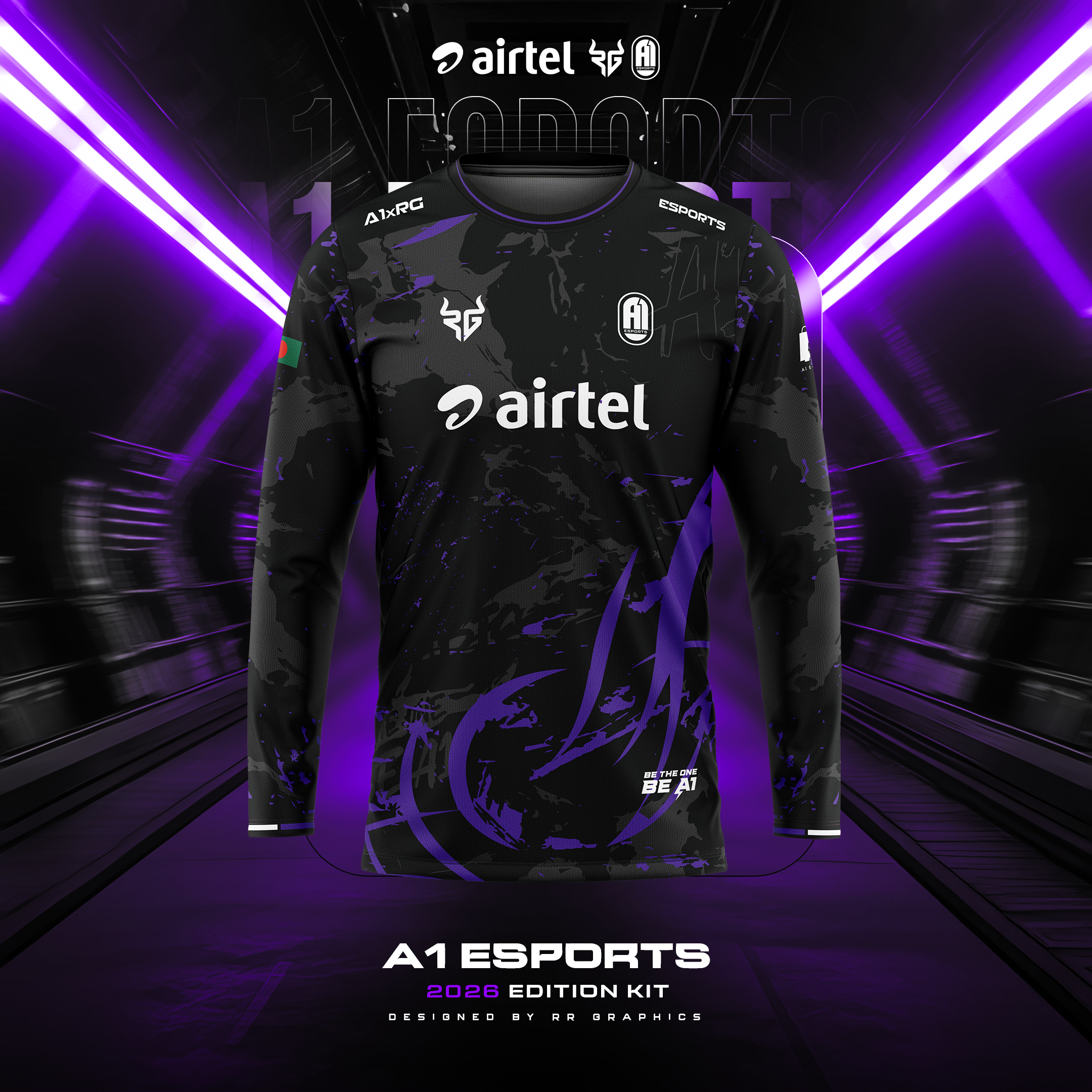 ✅ Signature Purple Identity – Bold purple tones symbolizing loyalty, dominance, and the heart of A1 Esports.